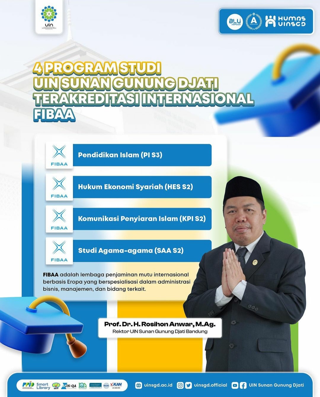 Sesuai dengan keputusan Komite Akreditasi dan Sertifikasi FIBAA (Foundation for Internasional Business Administration Accreditation) empat Program Studi di lingkungan UIN Sunan Gunung Djati Bandung meraih akreditasi internasional dari FIBAA.